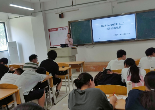 为了提升大学生的安全防范意识,让同学们能够在平时的学习工作及生活中不受诈骗分子的欺骗,掌握一定的防诈骗的技巧。21软件工程(对口)班于2022年5月26日在实训楼A109召开以“预防诈骗教育”为主题的班会。