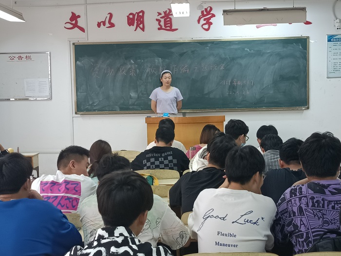 学生资助是一项重要的保民生、暖民心工程,事关教育公平,事关社会公平。为了让学生进一步了解资助政策,让全体学生充分感受到党和国家的温暖,辅导员吴孝银为21计算机5、6、7班召开资助政策宣传主题班会,带领全体学生学习了相关资助政策、申报条件及工作流程。