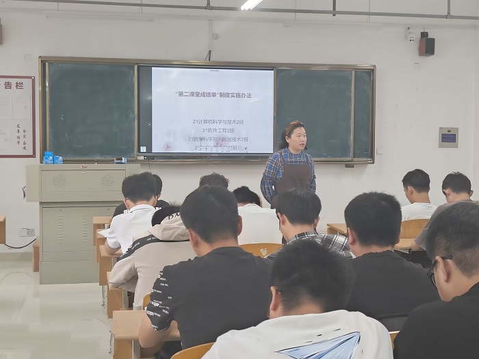 为了让同学们更加清晰地了解“第二课堂成绩单”制度实施的办法,以及如何获取学分,环球360会员注册21计算机科学与技术2班、21软件工程2班、21数据科学与大数据技术2班分别于10月8日、10月9日、10月10日在工科楼B401开展了“第二课堂成绩单”制度实施办法主题班会,本次主题班会由辅导员吴孝银老师主持,全体学生参加会议。